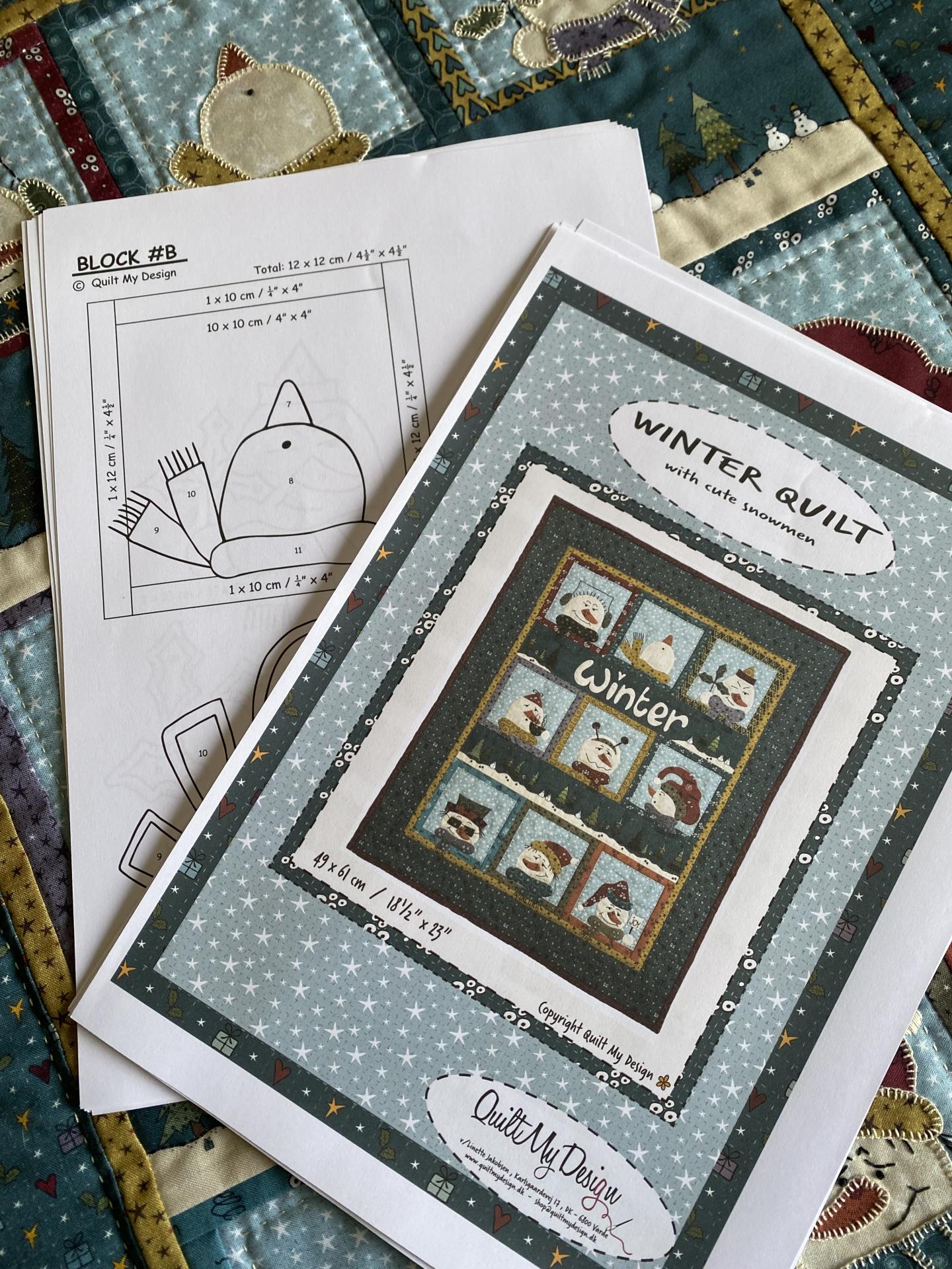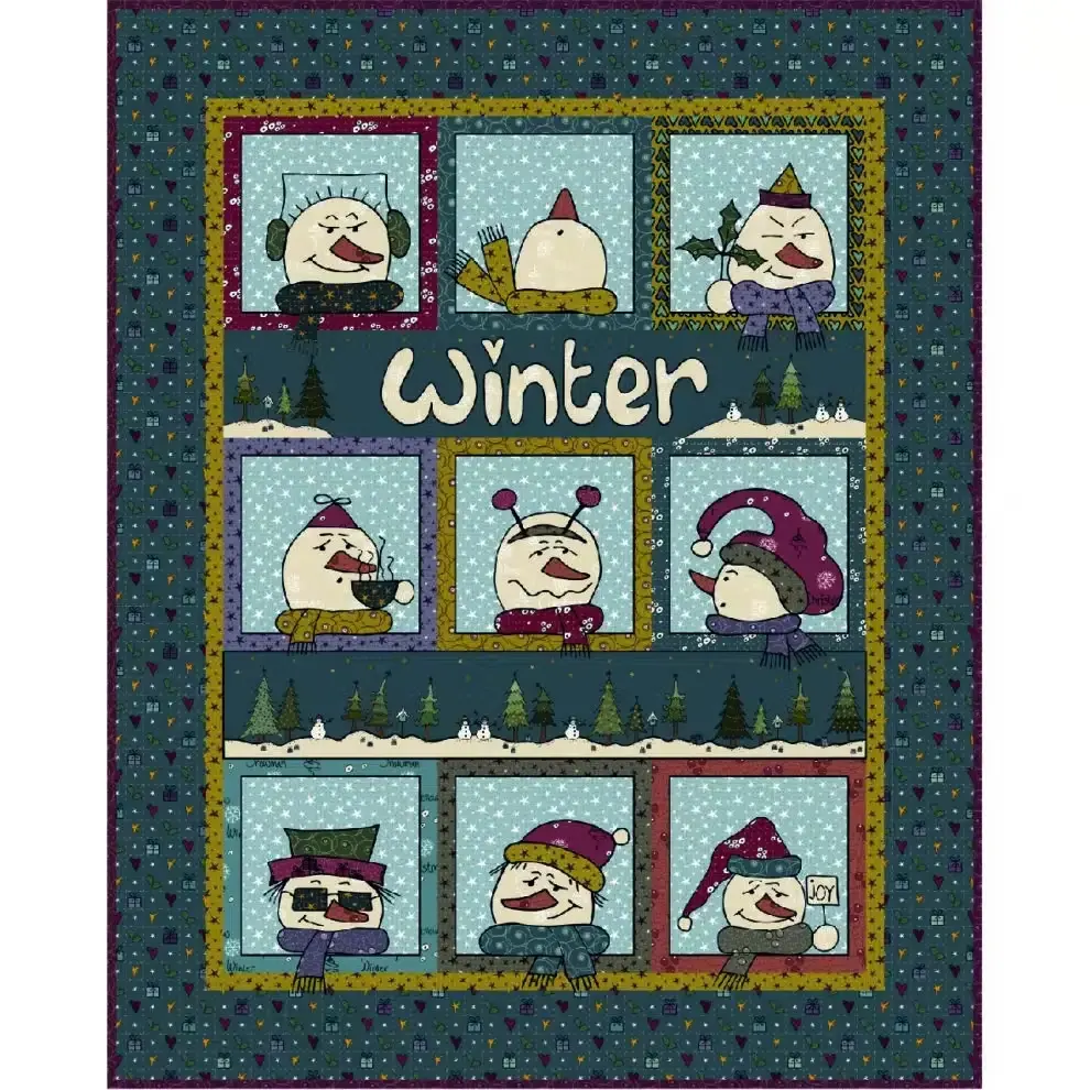 Kit "Winter Quilt" with cute snowmen by Linette Jacobsen comprenant un panneau de 1m70 environ qui regroupe tous les tissus du quilt (biais et dos compris), les schémas et les explications de montage